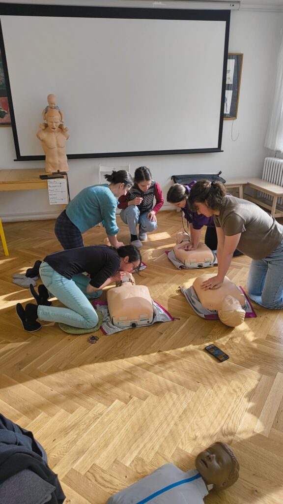 Mimo vlastní výuku se členové sami vzdělávali díky našim přátelům ze spolku Osahat si, kteří pro tým připravili podnětný kurz zaměřený na didaktiku první pomoci 🎓. V tuto chvíli mají za sebou první víkend intenzivního vzdělávání a druhý je čeká v polovině listopadu.